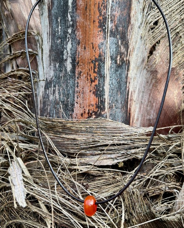 1 Donut en pierre naturelle Cornaline avec cordon de cuir marron 50 cm