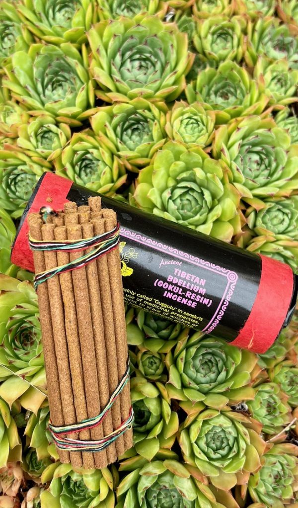 Bdellium est nomé « Guggulu » en sanskri, Cet encens est fabriqué à la main selon une recette ancienne tirée de la tradition Tibétaine.
